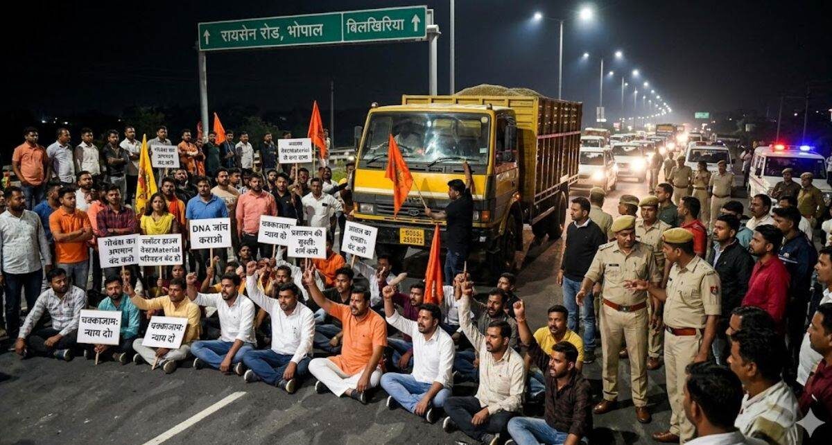 भोपाल के रायसेन रोड पर मंगलवार रात उस समय हंगामेदार स्थिति निर्मित हो गई, जब हिंदू संगठनों के कार्यकर्ताओं ने कथित तौर पर असलम चमड़े से जुड़े ट्रकों क …और पढ़ें भोपाल के रायसेन रोड पर हाईवोल्टेज ड्रामा दिखा (AI से जनरेट इमेज) HighLights भोपाल के रायसेन रोड पर जमकर ड्रामा हुआ हिंदू संगठनों […]