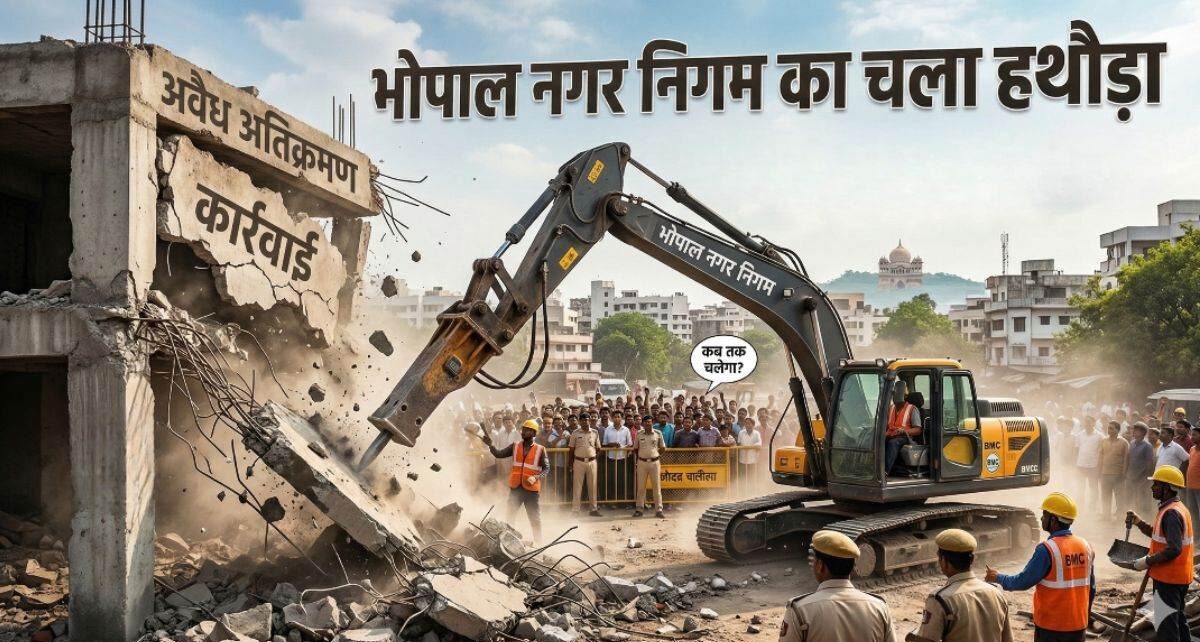 कोलार से करोंद तक हटाए अवैध शेड और रैंप। (Image Source: AI-Generated)
