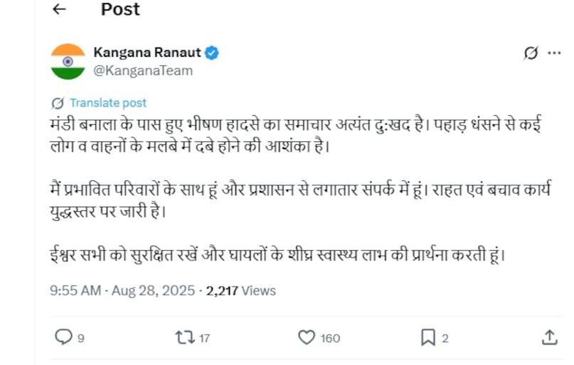हालांकि, मंडी की सांसद कंगना रनौत ने बड़ा दावा किया है और कहा कि मंडी के बनाला के पास हुए भीषण हादसे का समाचार अत्यंत दु:खद है. पहाड़ धंसने से कई लोग और वाहनों के मलबे में दबे होने की आशंका है. मैं प्रभावित परिवारों के साथ हूं और प्रशासन से लगातार संपर्क में हूं. राहत एवं बचाव कार्य युद्धस्तर पर जारी है.ईश्वर सभी को सुरक्षित रखें और घायलों के शीघ्र स्वास्थ्य लाभ की प्रार्थना करती हूं.