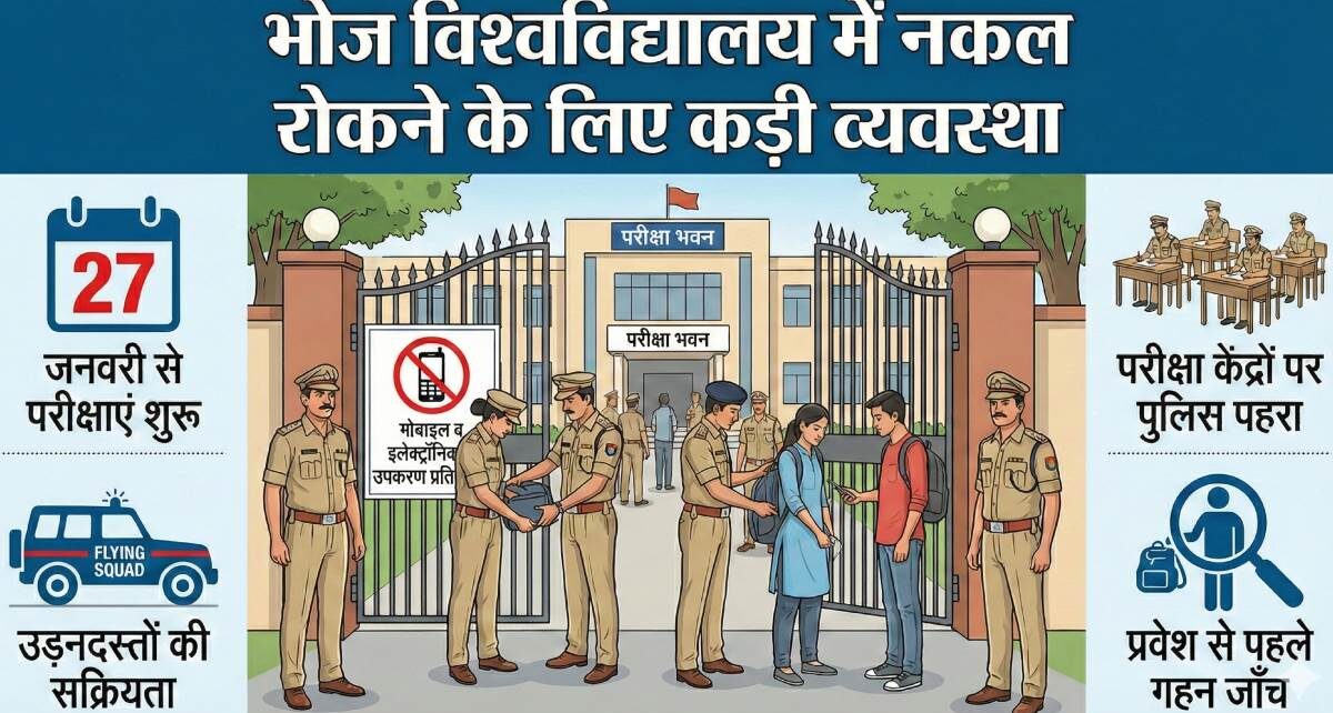 डॉ. सुशील मंडेरिया, कुलसचिव, भोज विवि का कहना है कि “परीक्षाओं की सुरक्षा को लेकर पुलिस विभाग को पत्र लिखा गया है, ताकि परीक्षाओं में किसी भी प्रकार की गड़बड़ी न हो सके।”